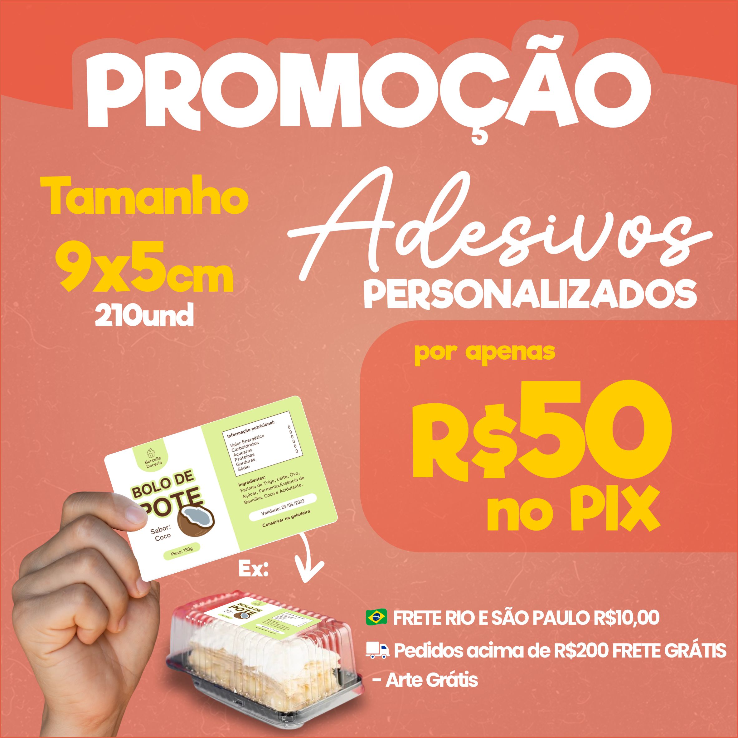 210 Adesivos vinil 9x5 personalizado a prova dágua