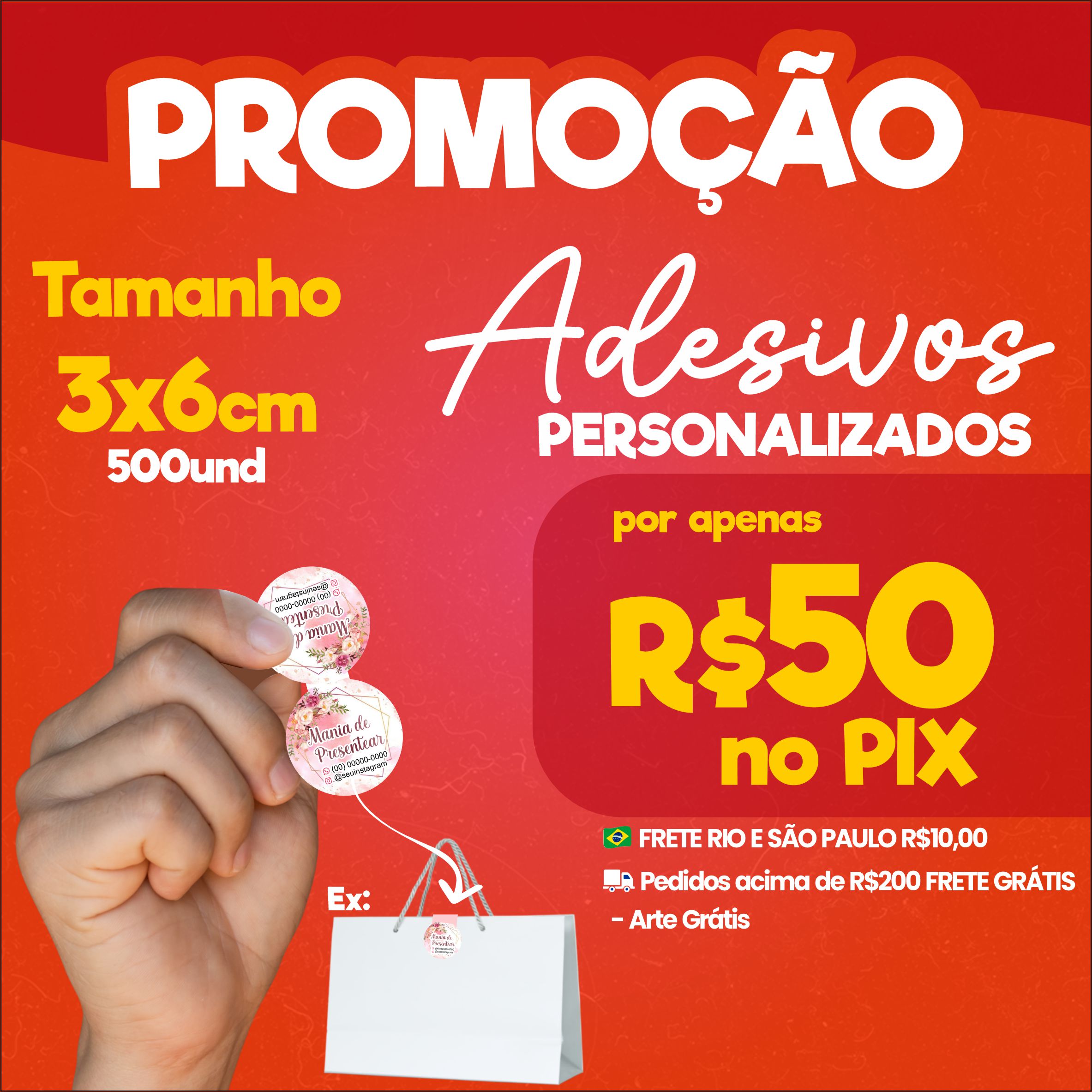 500 Adesivos em vinil 3x6 personalizado a prova dágua