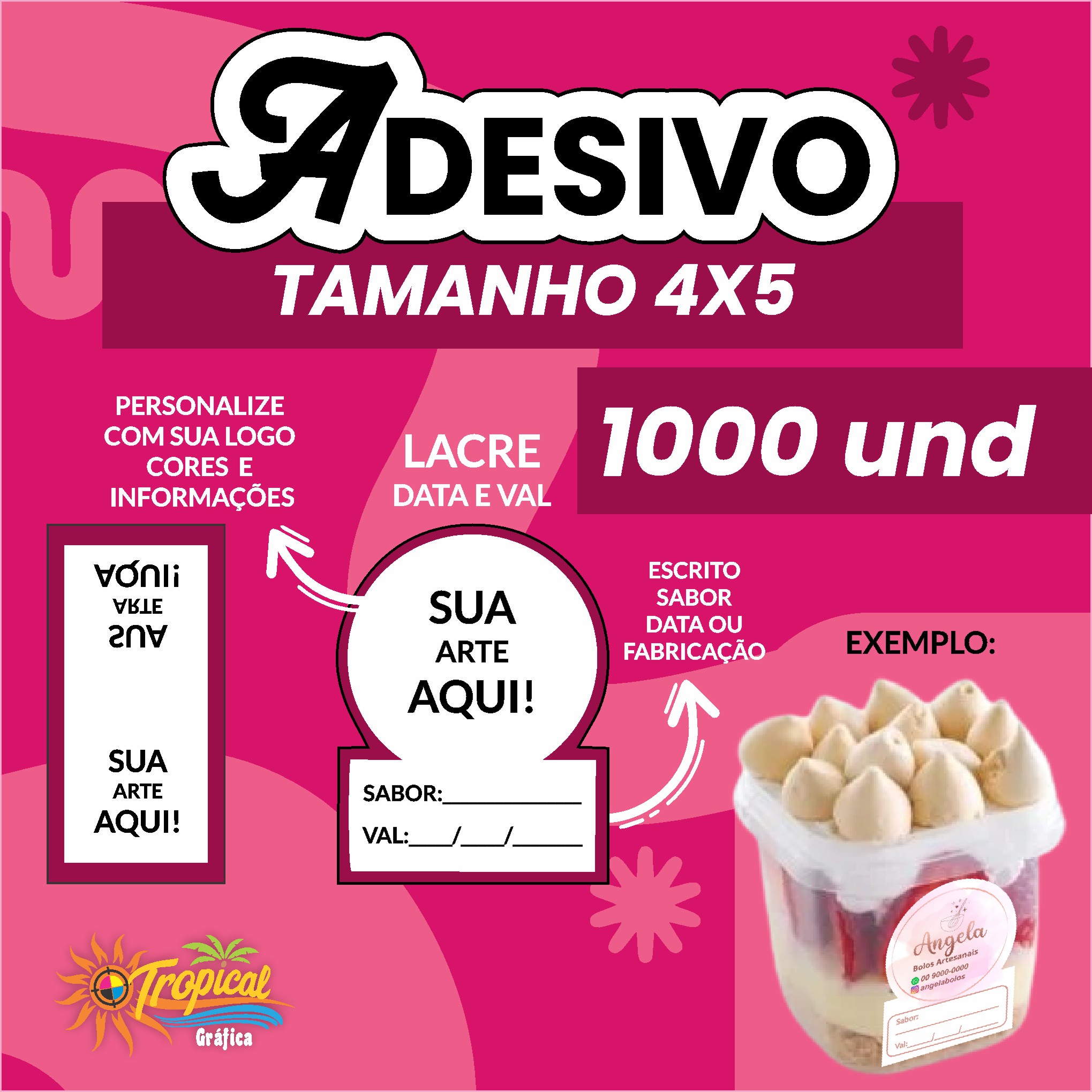 Adesivo lacre data e sabor 4x5 promoção 1000 unidades